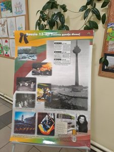 1–4 kl. ir 5–10 kl. mokiniai žiūrėjo vaizdo pamokas apie Lietuvos laisvės gynėjų dieną. Penktokai per pirmąją lietuvių kalbos ir literatūros pamoką rašė diktantą apie laisvės gynėjus.