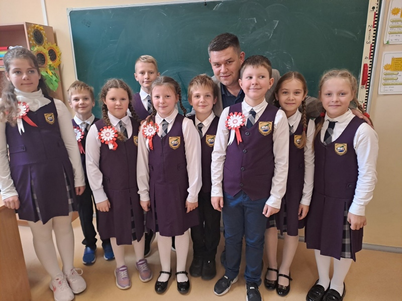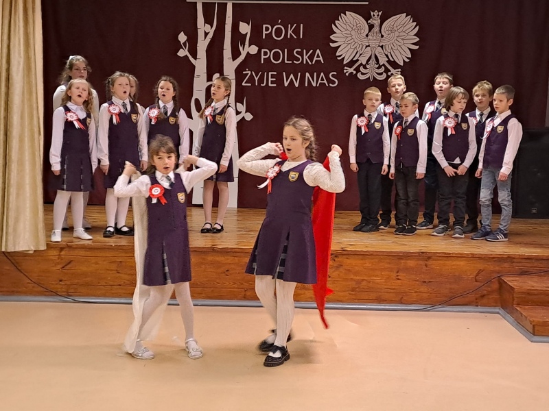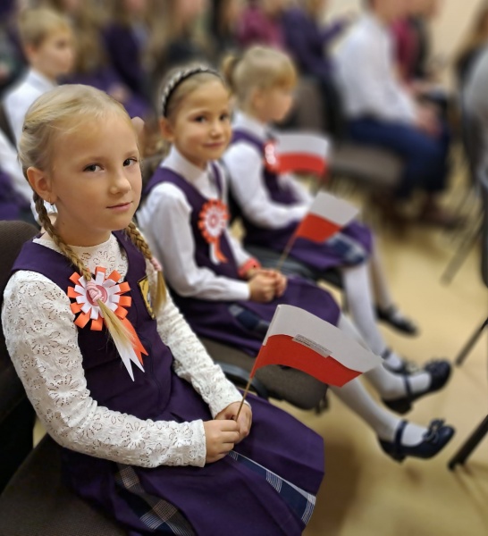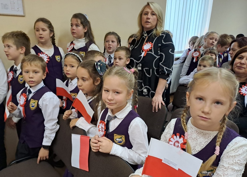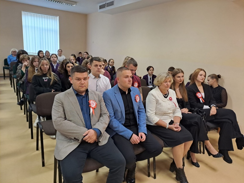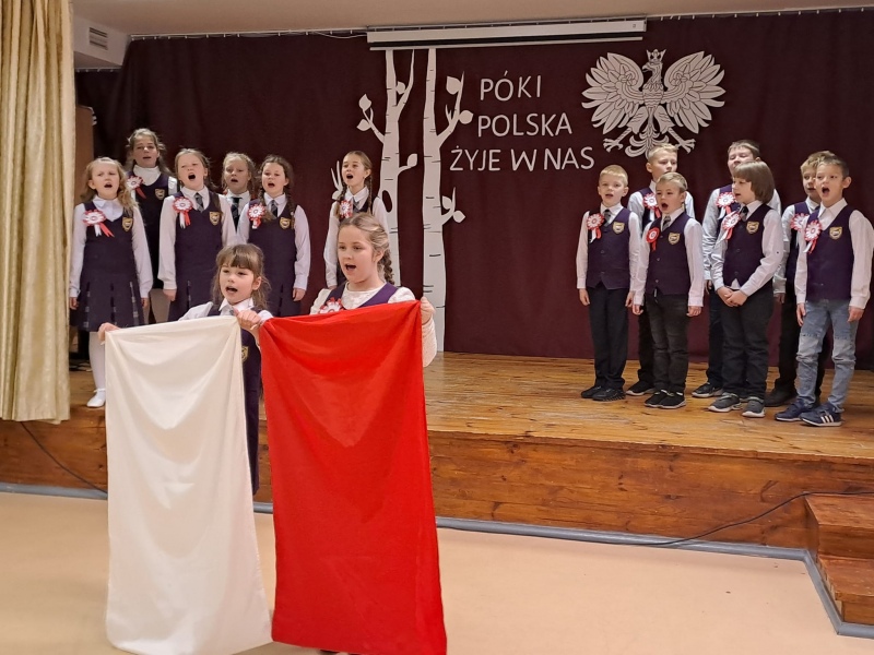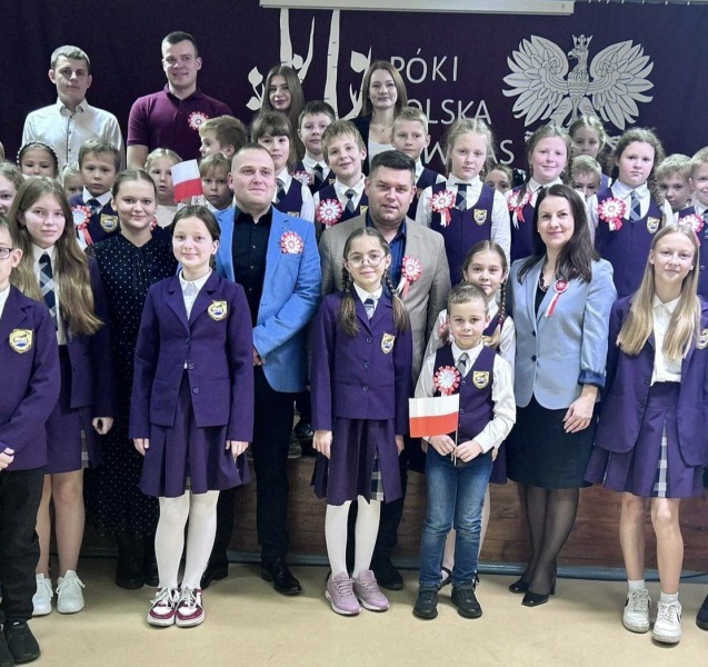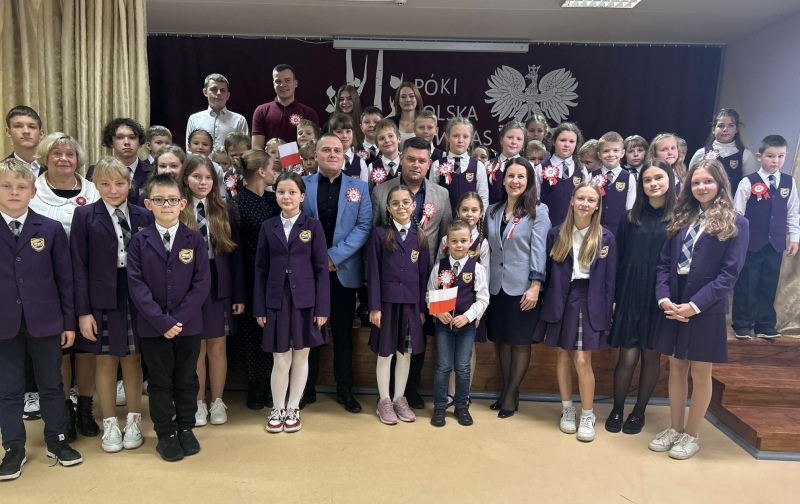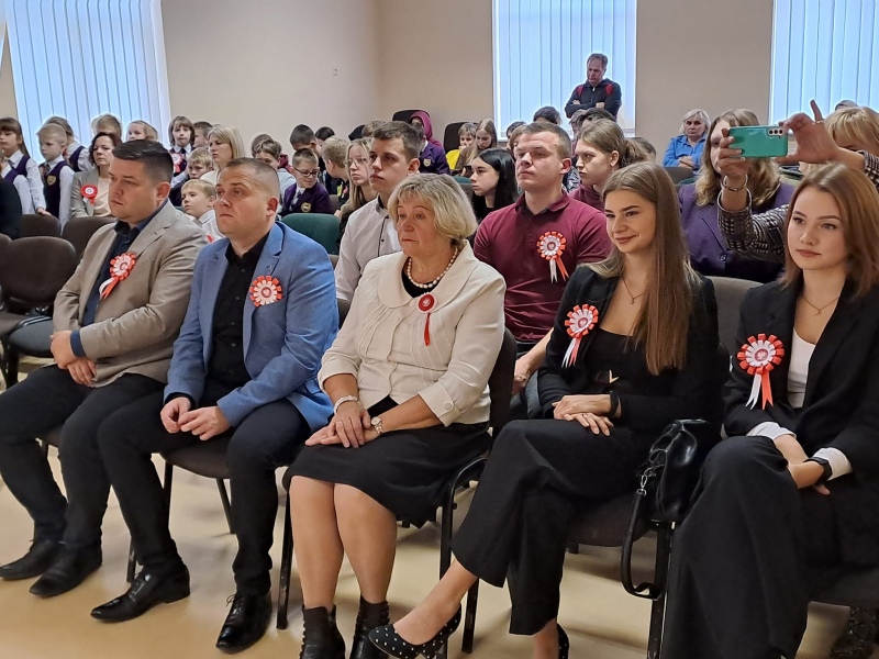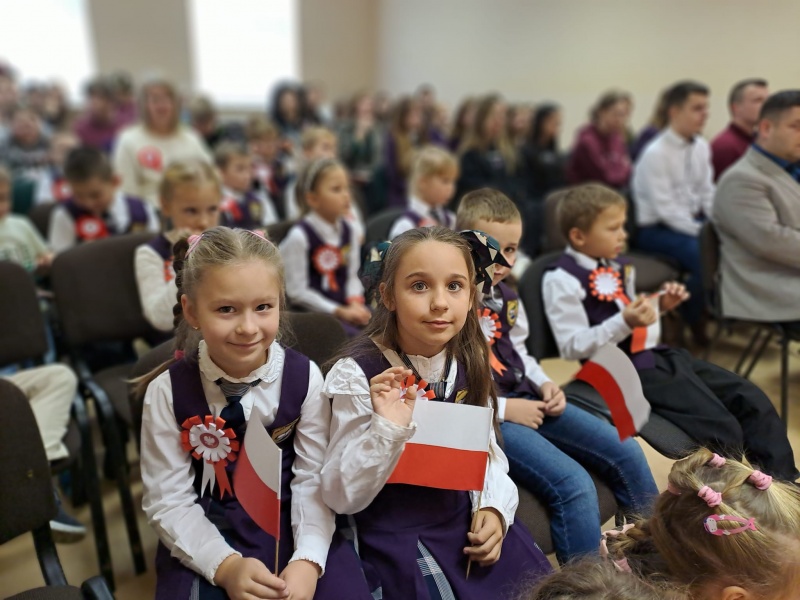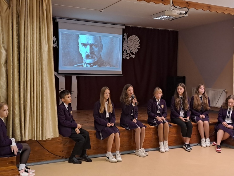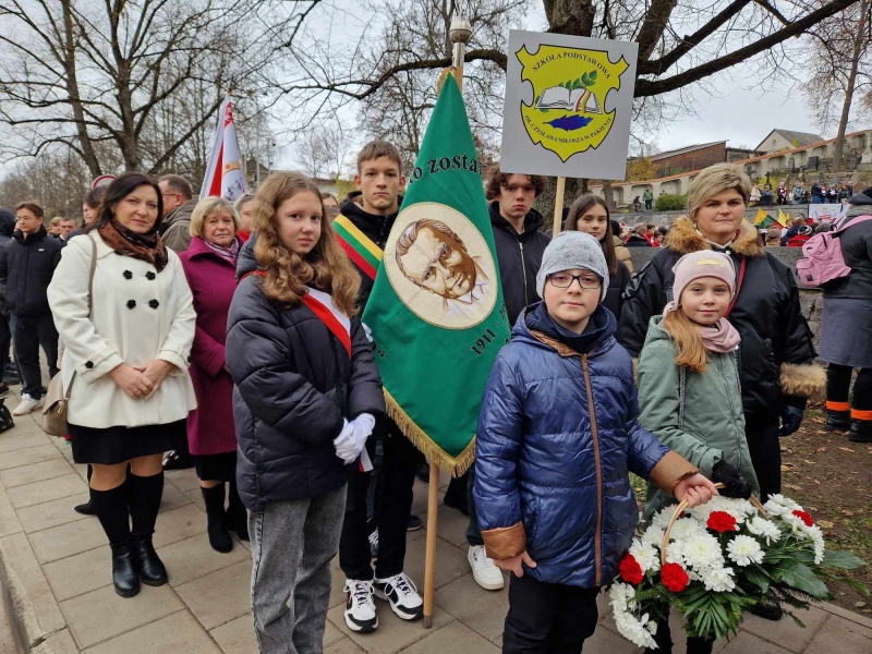 Uwieńczenie Tygodnia Języka Polskiego było nad wyraz uroczyste. 10 listopada na uroczystym apelu z okazji Święta Niepodległości Polski gościliśmy grupę przyjaciół ze stowarzyszenia Odra-Niemen Oddział Mazowiecki na czele z prezesem Krzysztofem Krzemińskim. Jednocząc się z rodakami z Macierzy, dołączyliśmy do akcji Ministerstwa Edukacji i Nauki RP „Szkoła do Hymnu”. 11 listopada obchodziliśmy uroczystość 105. rocznicy odzyskania przez Polskę niepodległości na centralnej nekropolii Wilna przy Mauzoleum Matki i Serca Syna, gdzie złożyliśmy symboliczny wieniec w hołdzie wdzięczności dla marszałka oraz wszystkich poległych żołnierzy.