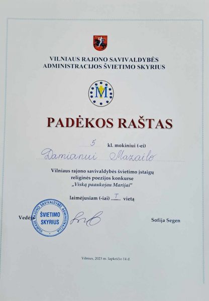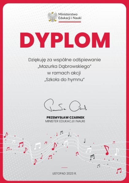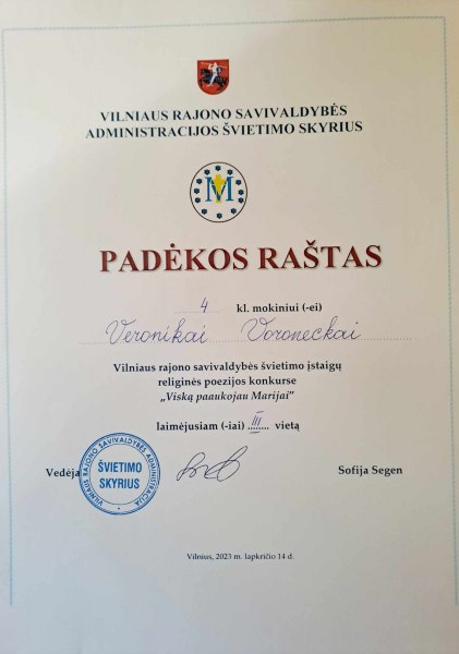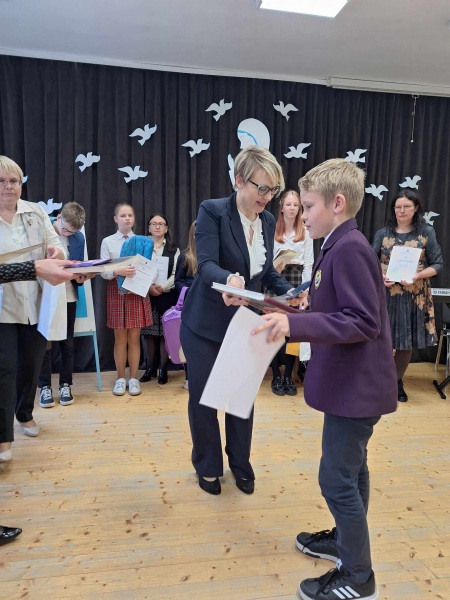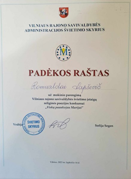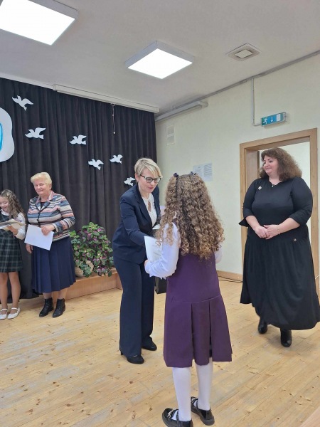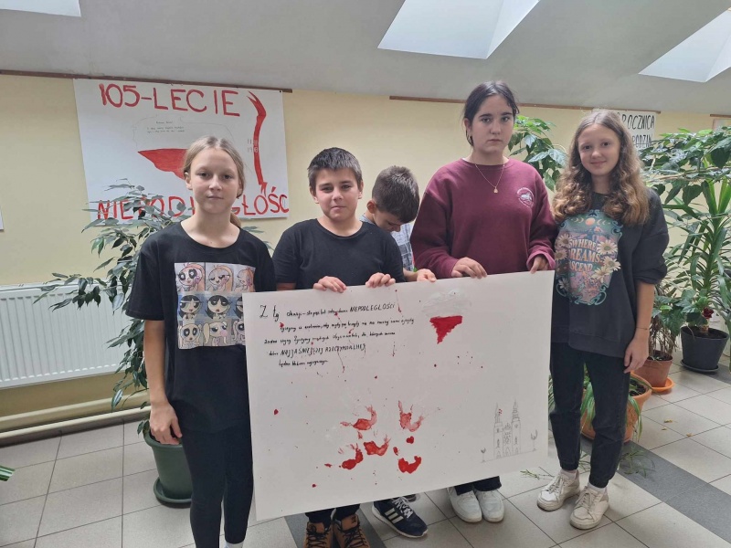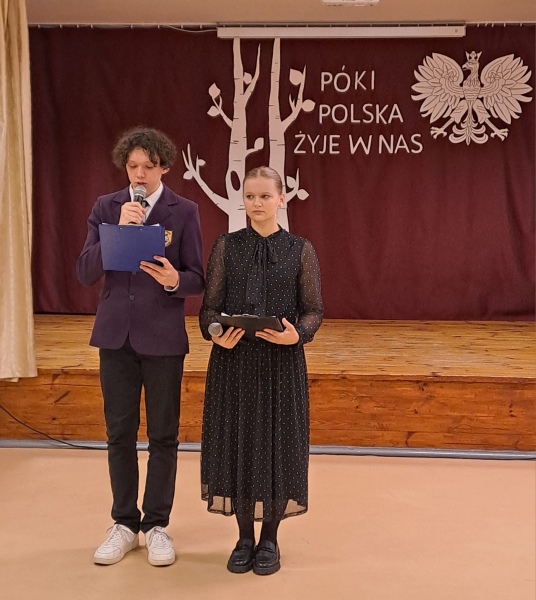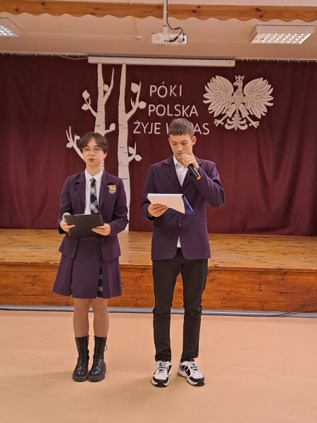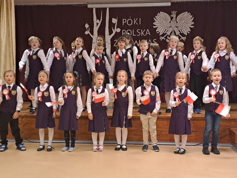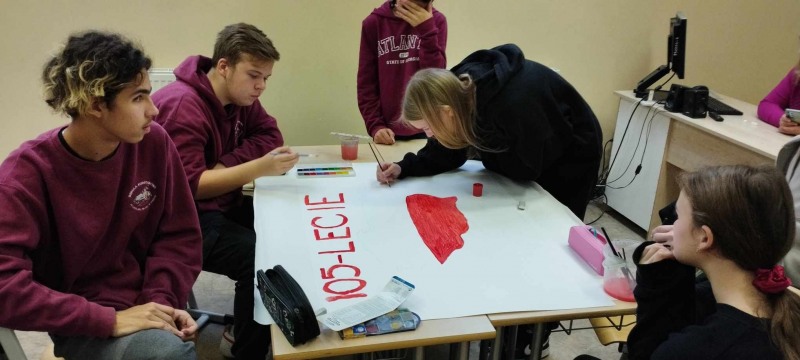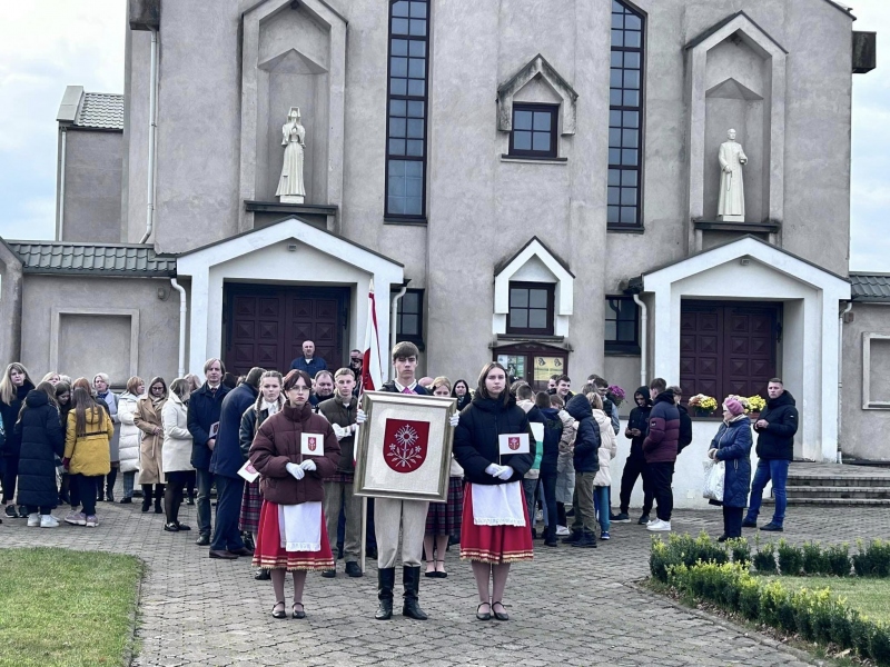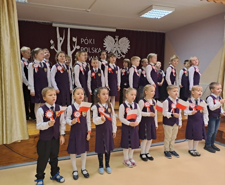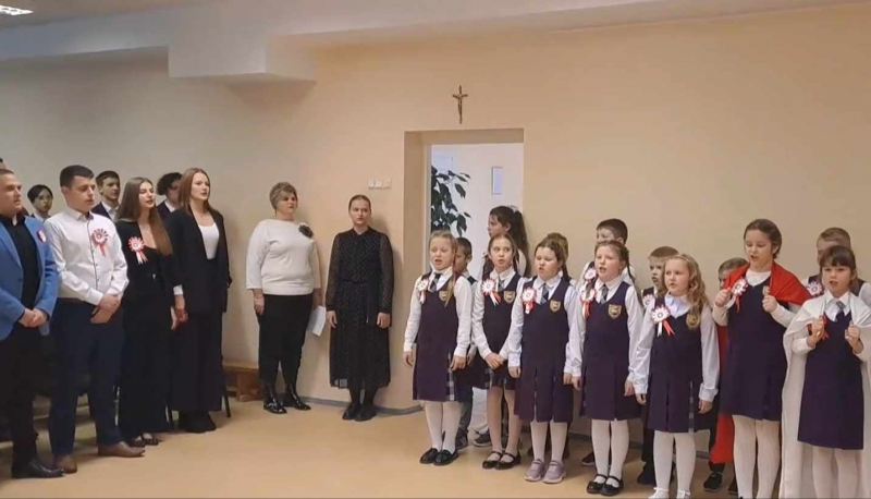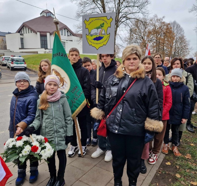 Uwieńczenie Tygodnia Języka Polskiego było nad wyraz uroczyste. 10 listopada na uroczystym apelu z okazji Święta Niepodległości Polski gościliśmy grupę przyjaciół ze stowarzyszenia Odra-Niemen Oddział Mazowiecki na czele z prezesem Krzysztofem Krzemińskim. Jednocząc się z rodakami z Macierzy, dołączyliśmy do akcji Ministerstwa Edukacji i Nauki RP „Szkoła do Hymnu”. 11 listopada obchodziliśmy uroczystość 105. rocznicy odzyskania przez Polskę niepodległości na centralnej nekropolii Wilna przy Mauzoleum Matki i Serca Syna, gdzie złożyliśmy symboliczny wieniec w hołdzie wdzięczności dla marszałka oraz wszystkich poległych żołnierzy.