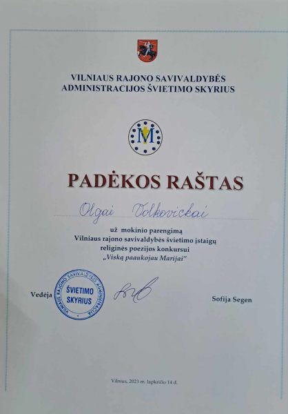 Tydzień Języka Polskiego okazał się wielkim świętem, nie tylko dla języka ojczystego, ale przede wszystkim stał się świętem kultury i tradycji naszej szkoły oraz wszystkich placówek oświatowych rejonu wileńskiego z polskim językiem nauczania.