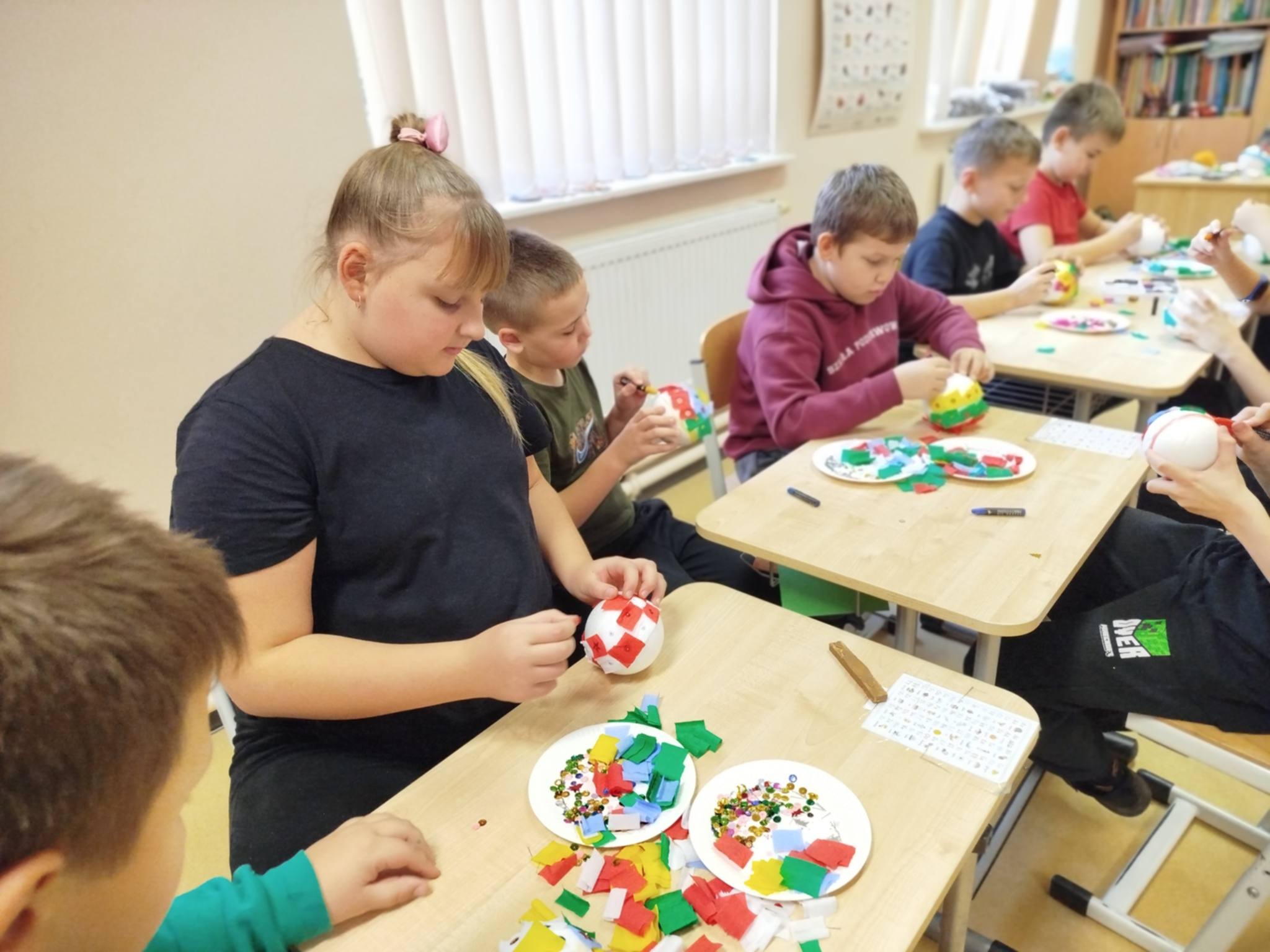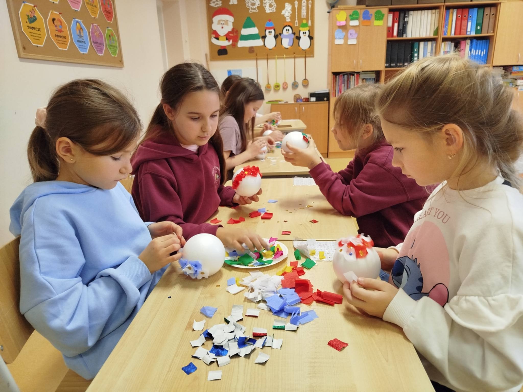 17 grudnia dzieci z grupy wczesnoszkolnej oraz uczniowie klas początkowych wzięli udział w warsztatach edukacyjnych „Bombkowa fantazja“.