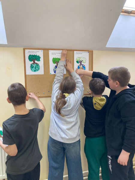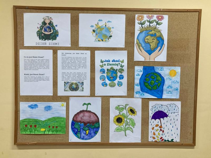 Žemės die­nos pro­ga vyres­nių­jų kla­sių moki­niai (mok. Ane­ta Baslyk) daly­va­vo įvai­rio­se edu­ka­ci­nė­se veik­lo­se. Pamo­kų metu jie susi­pa­ži­no su mūsų pla­ne­tos atsi­ra­di­mo isto­ri­ja bei suži­no­jo, kada ir kodėl mini­ma Žemės die­na. Savo žinias moki­niai galė­jo patik­rin­ti daly­vau­da­mi temi­nė­je vik­to­ri­no­je, kuri sulau­kė dide­lio susi­do­mė­ji­mo ir įsi­trau­ki­mo. Moki­niai taip pat paren­gė pla­ka­tus, ska­ti­nan­čius sau­go­ti aplin­ką ir rūpin­tis mūsų pla­ne­ta.