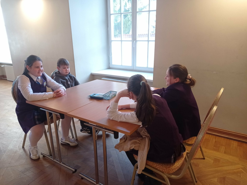Kovo 16 d. ketu­ri 4 kl. moki­niai (Mila­na Gai­duke­vič, Augus­ty­na Kova­levs­ka, Niko­le­ta Šliach­to­vič, Domi­nik Zavad­s­ki) kar­tu su tiky­bos vyresn. moky­to­ja Romu­al­da Lap­še­vič daly­va­vo vik­to­ri­no­je „Esu kata­li­kas“, kurią orga­ni­za­vo Vil­niaus arki­vys­ku­pi­jos Kateche­ti­kos centras.