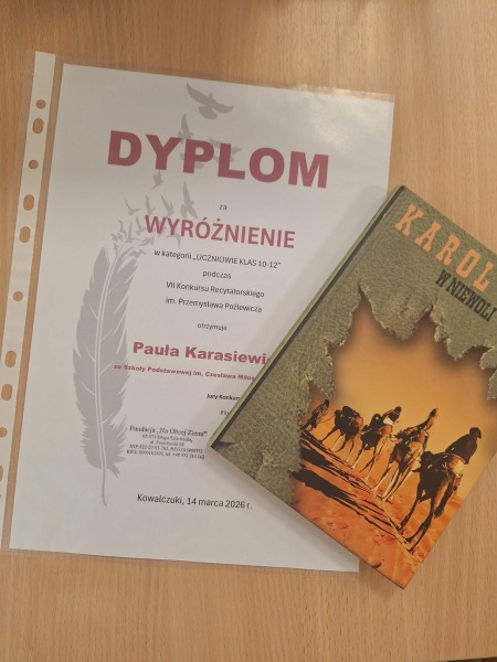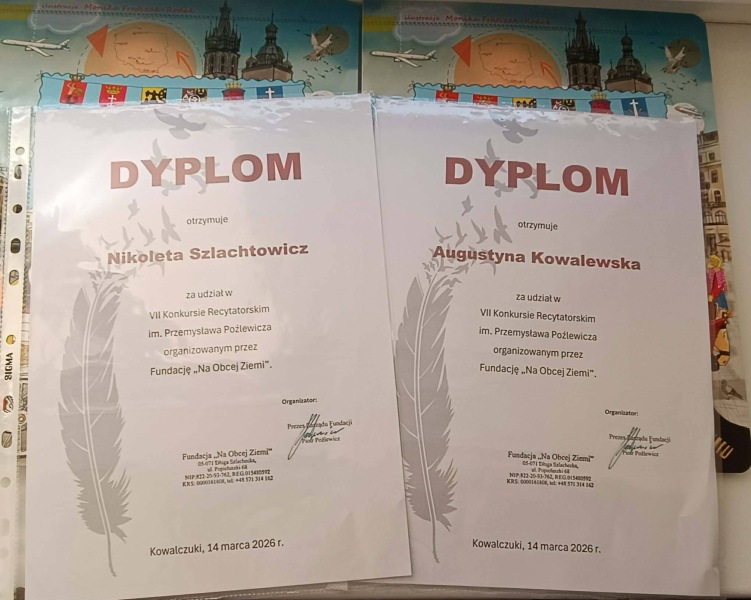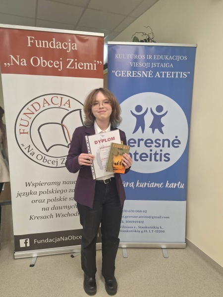 Kovo 14 d. sep­ty­ni mūsų mokyk­los skai­to­vai daly­va­vo VII Pše­mysla­vo Poz­le­vi­čiaus skai­to­vų kon­kur­se, kurį orga­ni­za­vo Fon­das „Na Obcej Zie­mi”. Kon­kur­sas vyko Vil­niaus r. Kal­ve­lių Sta­nisla­vo Moniuš­kos gim­na­zi­jo­je. Du skai­to­vai tapo kon­kur­so lau­re­atais: