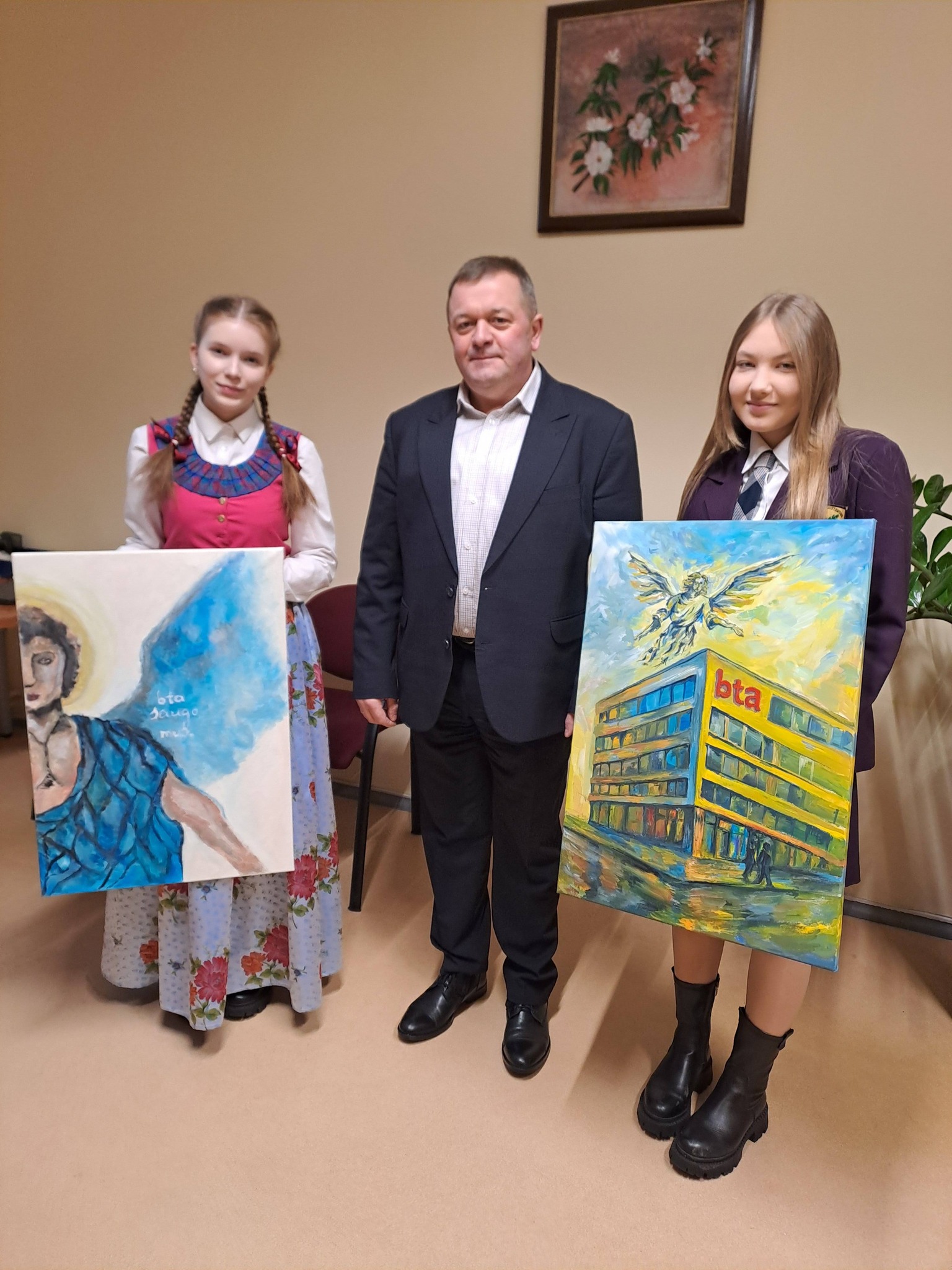 Sau­sio 23 d. mokyk­lo­je lan­kė­si BTA val­dy­bos narys Tade­uš Pod­vor­s­ki, kuris atsi­ėmė Evos ir Aria­nos dar­bus. Mer­gi­nų paveiks­lai bus eks­po­nuo­ja­mi BTA Art gale­ri­jo­je.