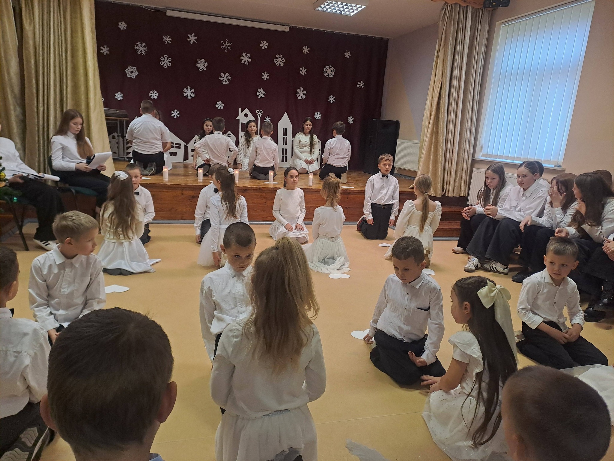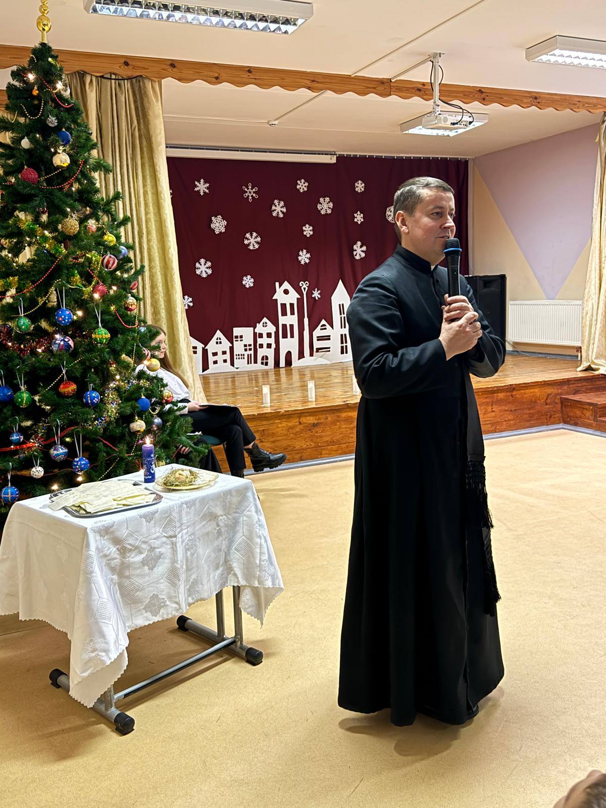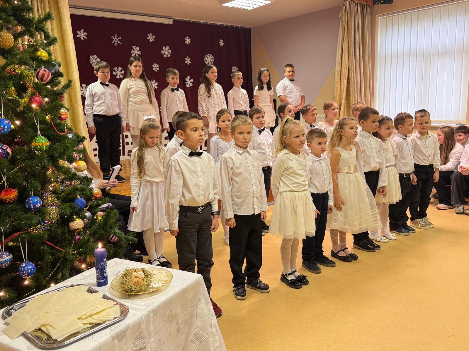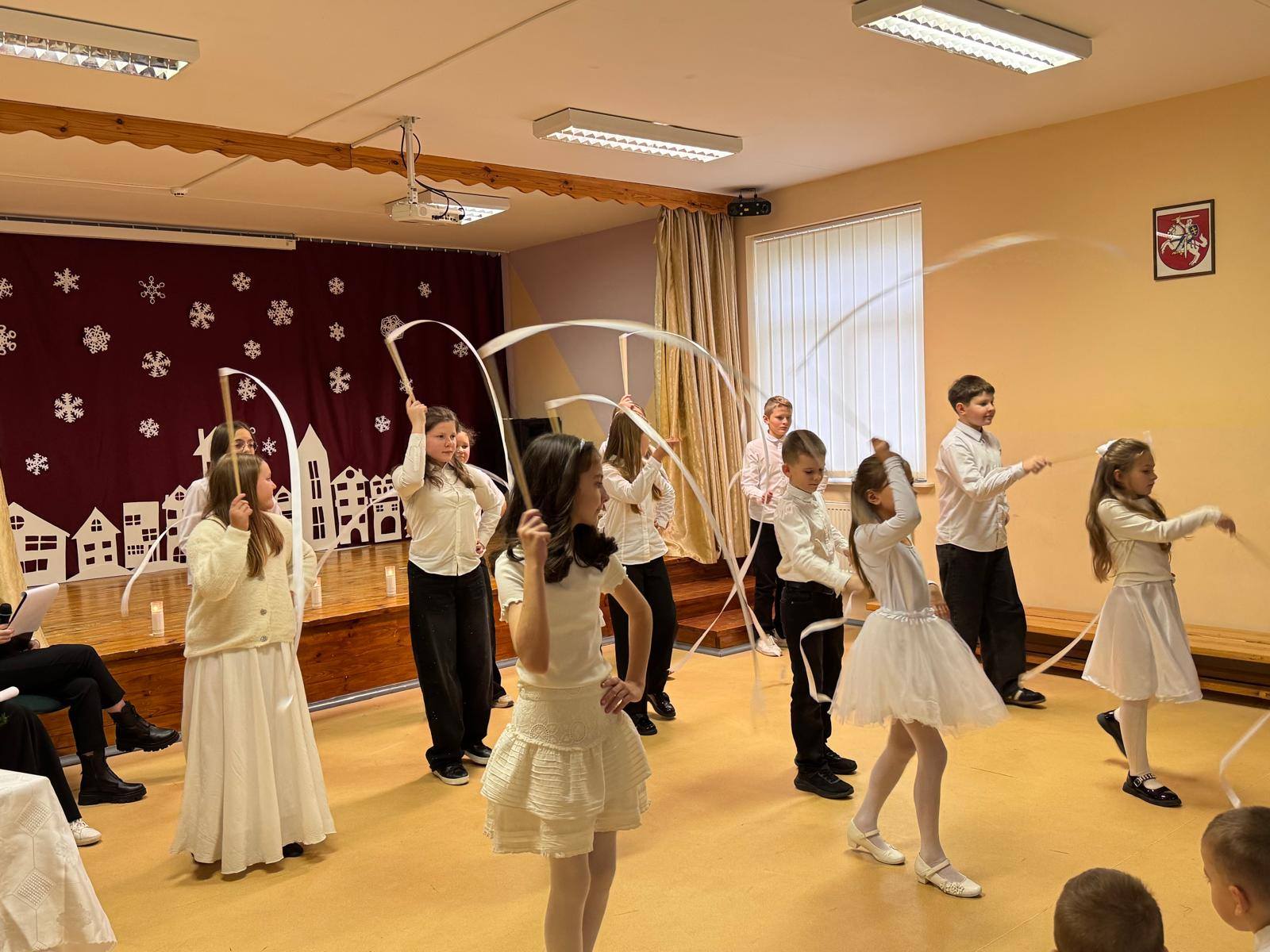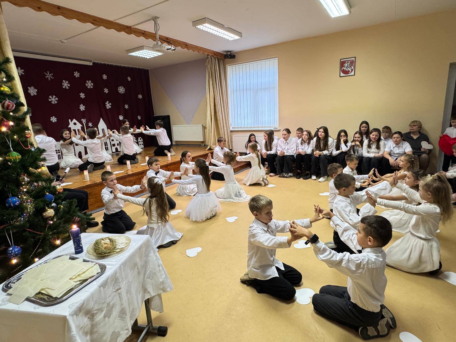 Gruodžio 21 d. mokyklos aktų salėje vyko kalėdinis renginys „Jėzaus gimimo belaukiant“ ir dalijimasis kalėdaičiu.