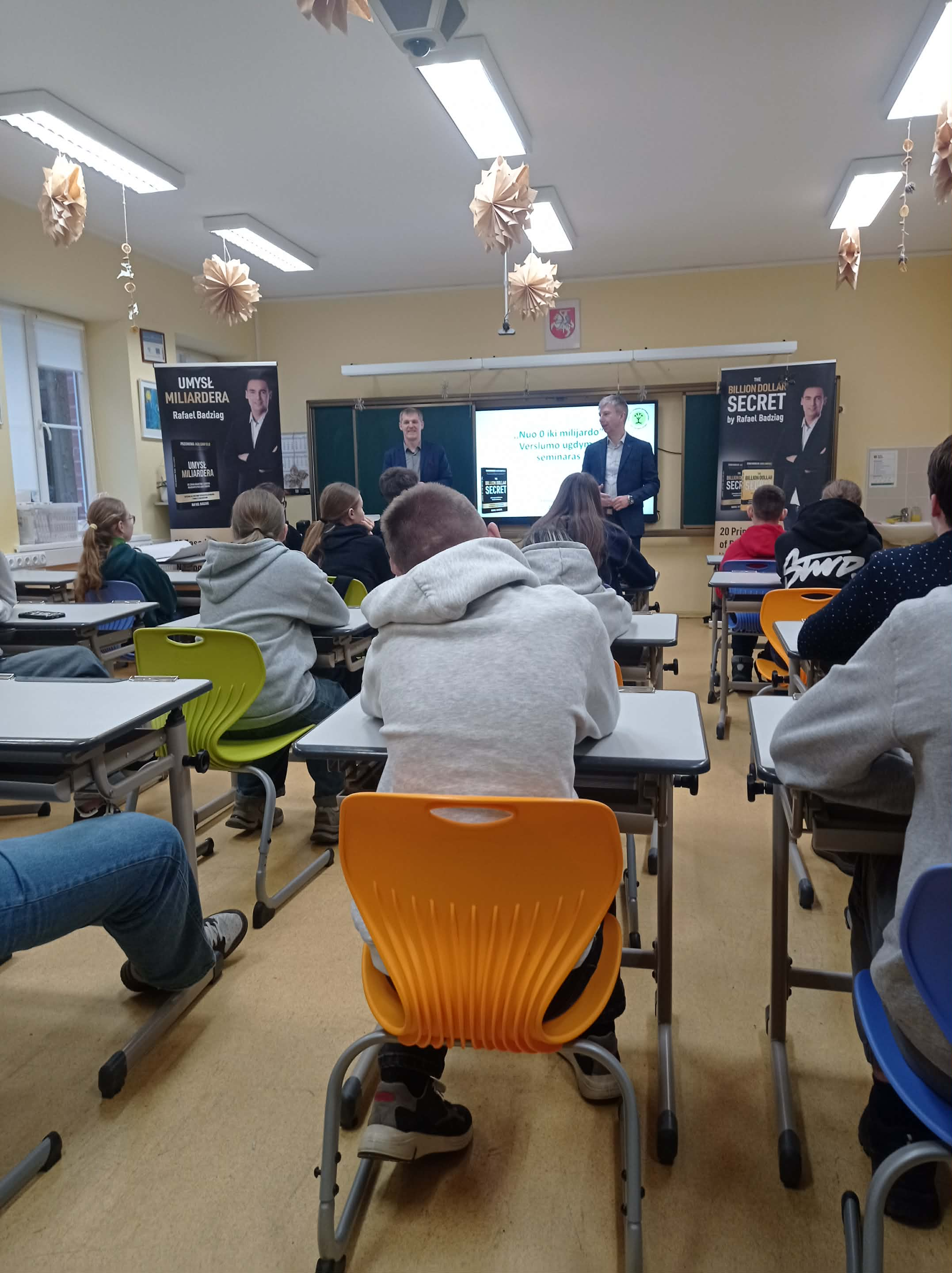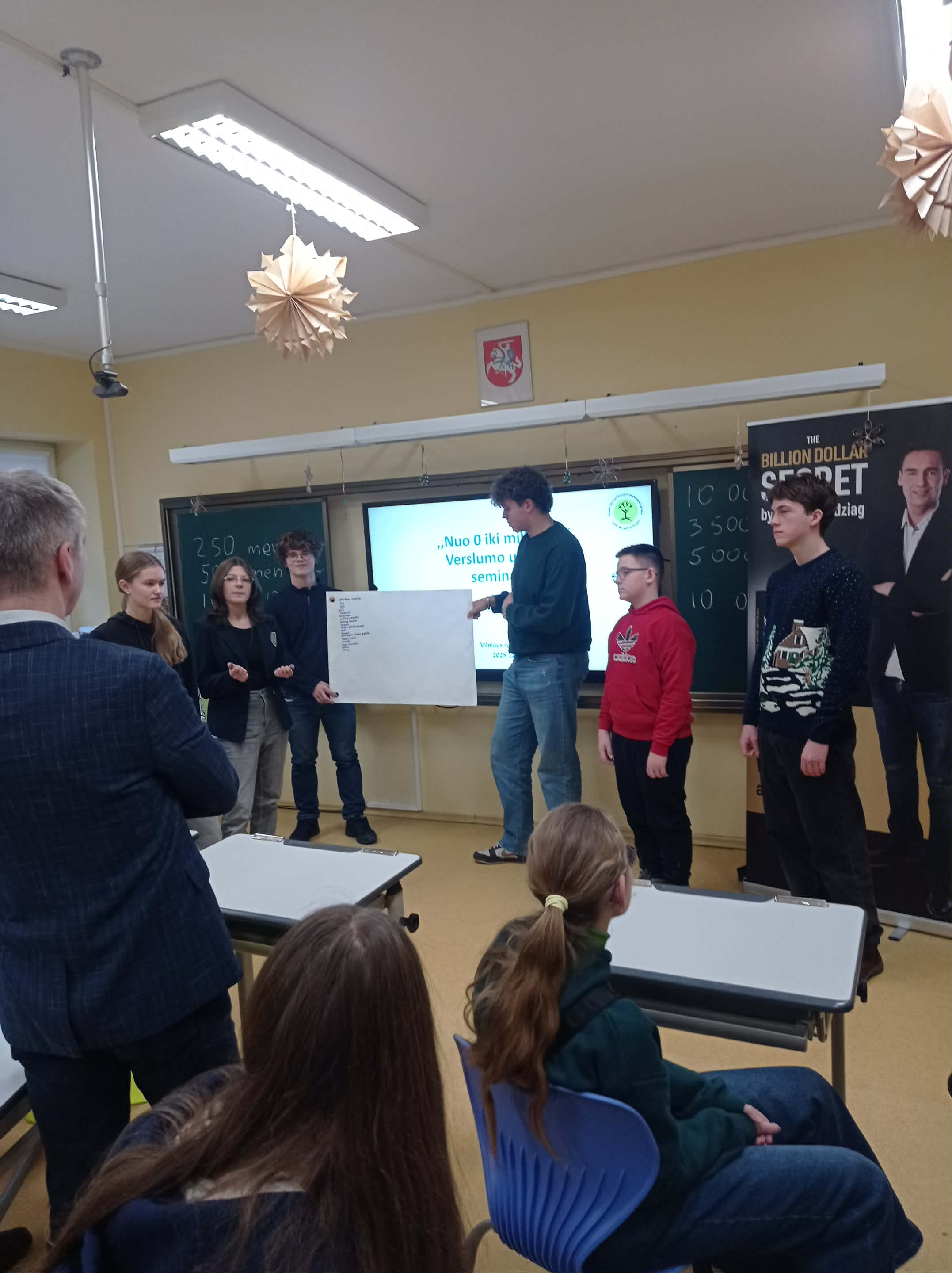 29 grudnia uczniowie klas 7 i 9 (specjalistka ds. zawodowych R. Lapszewicz) wzięli udział w praktycznych zajęciach z zakresu przedsiębiorczości pt. „Od 0 do miliarda”, które zostały zorganizowane przez Poradnię Pedagogiczno-Psychologiczną Rejonu Wileńskiego.