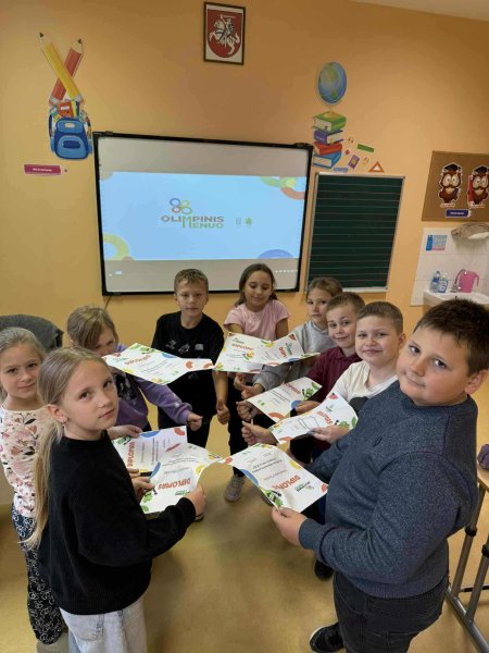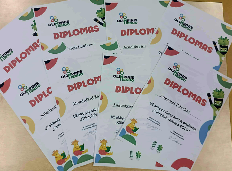 Nuo rugsėjo 29 d. iki spalio 26 d. pradinių klasių mokiniai dalyvavo projekte „Olimpinis mėnuo 2025“,kurį kasmet inicijuoja Lietuvos tautinis olimpinis komitetas. Projektą globoja Lietuvos Pirmoji ponia – Diana Nausėdienė. Projekto tikslas – bendradarbiaujant su pedagogais skatinti fizinio raštingumo ugdymą, padėti moksleiviams atrasti sveiką gyvenseną ir fizinį aktyvumą kaip linksmą ir naudingą veiklą, supažindinti su olimpinėmis vertybėmis bei principais – pagarba, draugyste, tobulėjimu.