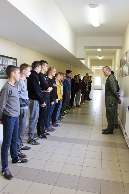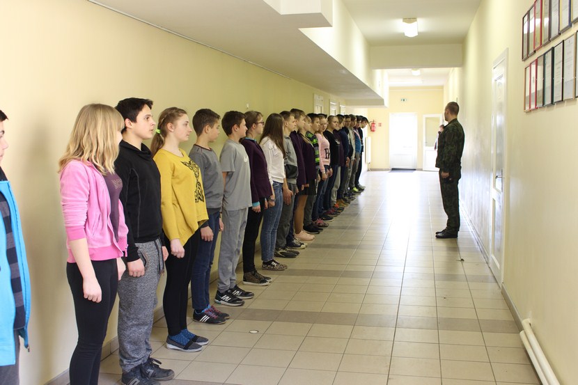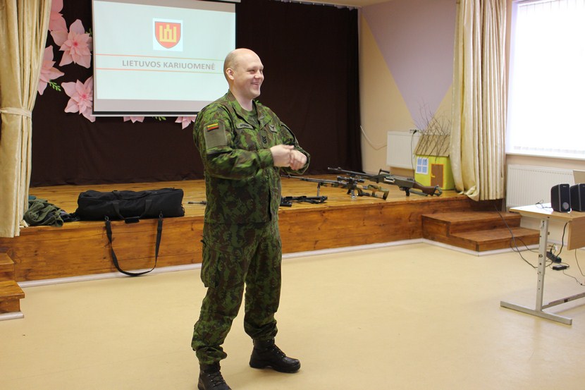 Kovo 20 d. mokykloje lankėsi Lietuvos kariuomenės Karo prievolės ir komplektavimo tarnybos atstovai – št. srž. Igoris Bartanovičius, vyr. srž. Igoris Afoninas ir srž. Audrius Gervelis. Kareiviai papasakojo 5–9 kl. mokiniams apie Lietuvos kariuomenę, kodėl verta eiti tarnauti, o taip pat mokė mokinius kareiviškos rikiuotės, supažindino su kariška ginkluote.