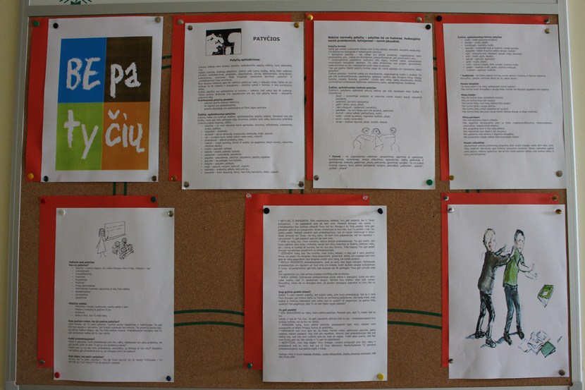 Kovo 20–24 d. mokykloje vyko „Savaitė BE PATYČIŲ“. Soc. pedagogė V. Lokutijevska paruošė informacinį stendą šia tema, atliko anketinę 5–9 kl. mokinių apklausą „Patyčios mokykloje“.
