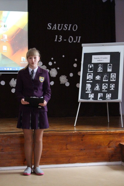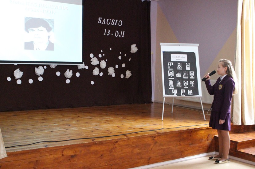 Sausio 13-ąją mokykla prisijungė prie Tarptautinės komisijos nacių ir sovietinio okupacinių režimų nusikaltimams Lietuvoje įvertinti organizuojamos pilietinės akcijos „Atmintis gyva, nes liudija”, skirtos Sausio 13-osios – Laisvės gynėjų dienai paminėti. 8.00 val. buvo užgesinta šviesa ir languose dešimčiai minučių uždegtos atminties žvakutės. Vėliau aktų salėje vyko Sausio 13-osios dienos minėjimo renginys.