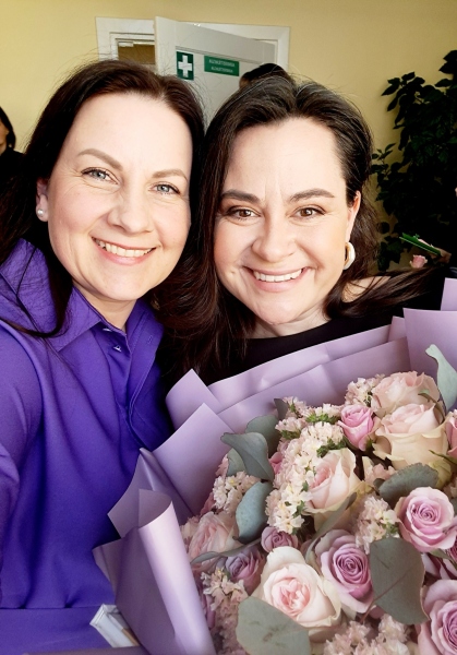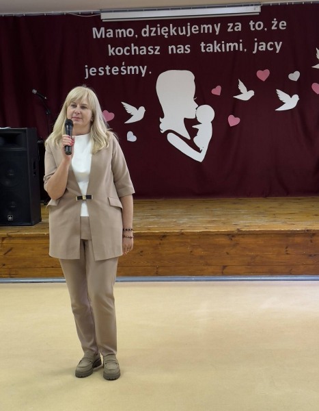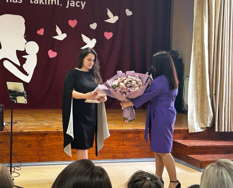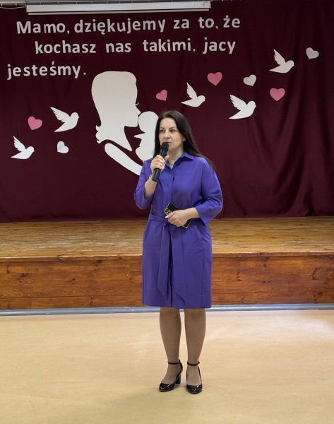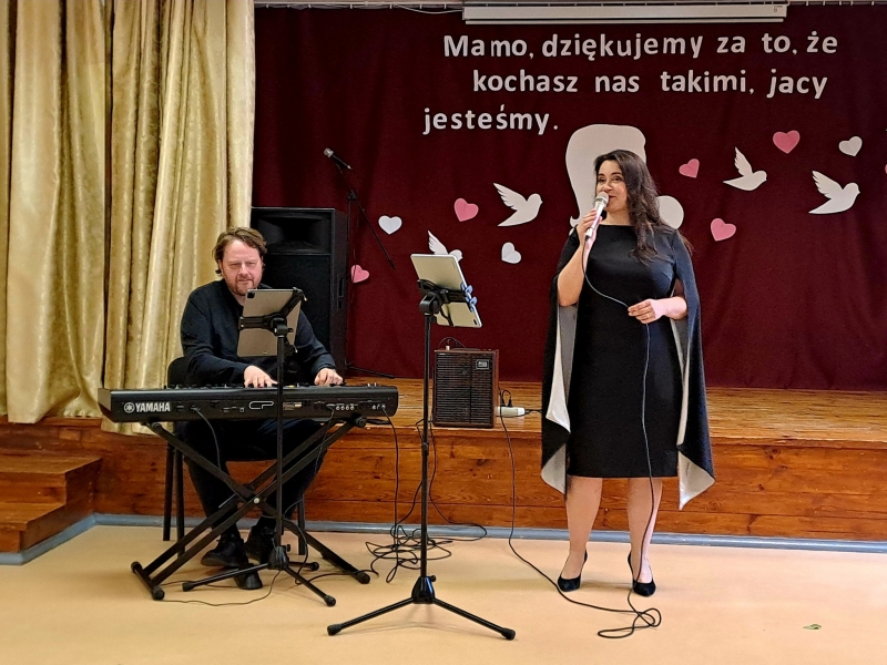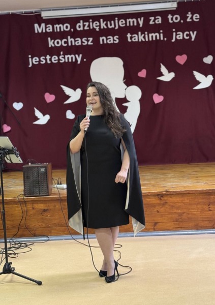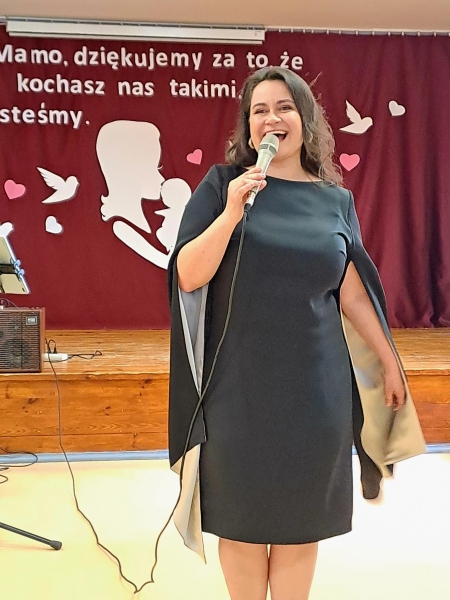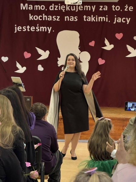 Po mokinių pasirodymų mamų laukė ypatinga staigmena – džiazo vokalistės ir šansono atlikėjos Evelinos Sašenko koncertas. Gerai žinoma ir gerbiama dainininkė, kurios balsas paliečia širdis, atliko dainas prancūzų ir lenkų kalbomis. Jaudinanti muzika užbaigė šią gražią šventę, visiems suteikdama daug džiaugsmo, šypsenų ir gerų emocijų. Tai buvo akimirkos, kupinos šilumos, dėkingumo ir meilės – širdys plakė vienu ritmu: meilės Mamai ritmu. Dėkojame Evelinai Sašenko už jos pasirodymą, gražų koncertą ir už tai, kad mūsų mamoms suteikė nepamirštamų įspūdžių.