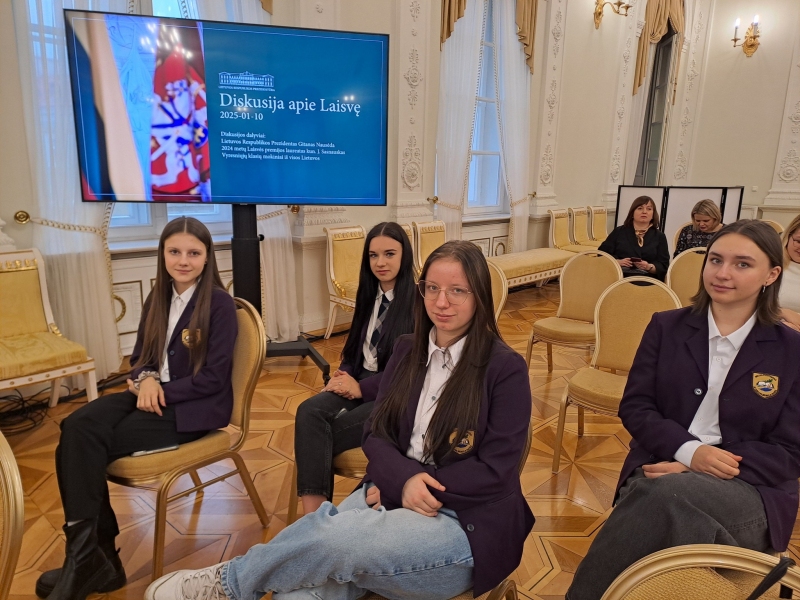 Sausio 10 d., Laisvės gynėjų dienos išvakarėse, keturios 9–10 kl. mokinės ir direktoriaus pavaduotoja ugdymui Irena Mazailo dalyvavo „Diskusijoje apie Laisvę“, kuri vyko Lietuvos Respublikos Prezidento rūmuose. Diskusijoje dalyvavo Lietuvos Respublikos Prezidentas Gitanas Nausėda ir 2024 metų Laisvės premijos laureatas, neginkluoto antisovietinio pasipriešinimo dalyvis, publicistas, politinis kalinys, kun. Julius Sasnauskas bei moksleiviai iš visos Lietuvos.
