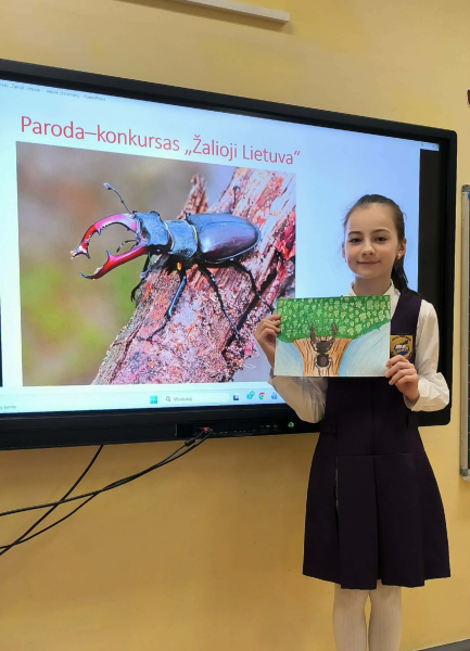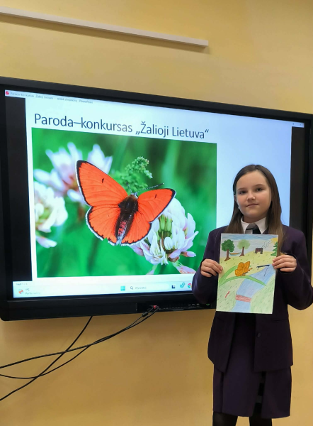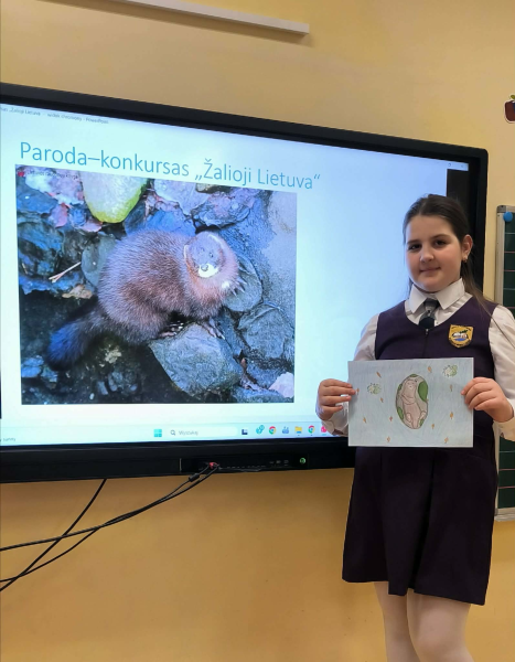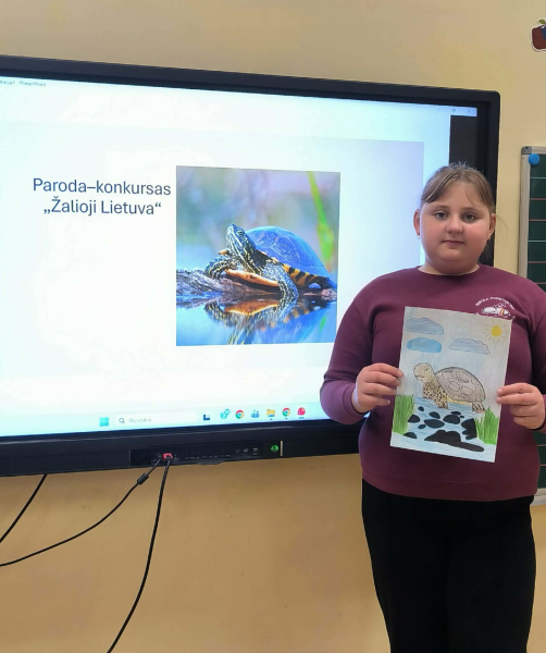 Kovo mėne­sį 4 kl. moki­niai (mok. Bože­na Stan­ke­vič) daly­vau­ja Res­pub­li­ki­nė­je pra­di­nių kla­sių moki­nių pie­ši­nių paro­do­je-kon­kur­se „Žalio­ji Lie­tu­va“, kurią orga­ni­zuo­ja Vil­niaus r. Rukai­nių gim­na­zi­ja. Paro­dos-kon­kur­so tiks­las – ugdy­ti atvi­rą, aplin­kai ir gam­tai dėme­sin­gą moki­nį, ska­tin­ti jį kūry­biš­kai reikš­ti savo požiū­rį į Lie­tu­vos gam­tos išsau­go­ji­mą, ypa­tin­gą dėme­sį ski­riant Lie­tu­vos rau­do­no­jo­je kny­go­je įra­šy­tiems gyvū­nams ir jų gyve­na­ma­jai aplinkai.