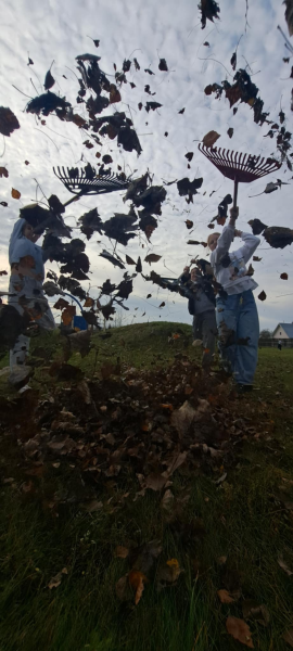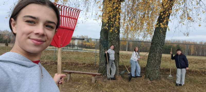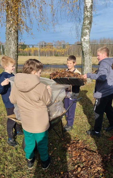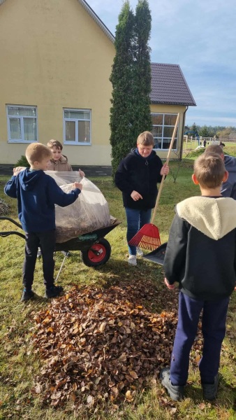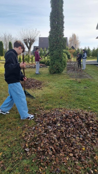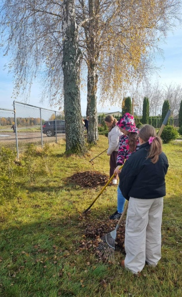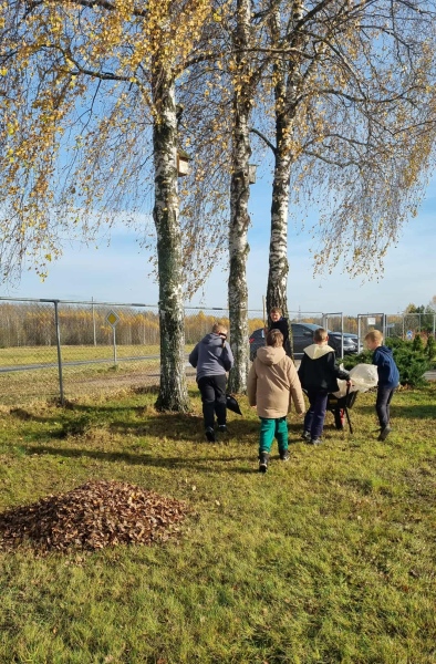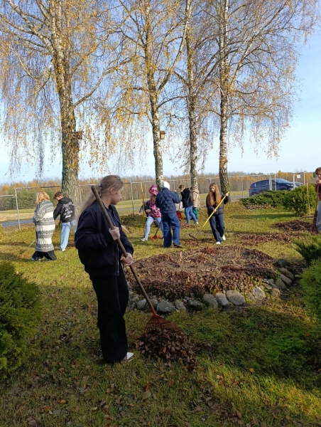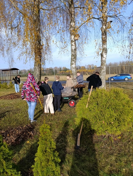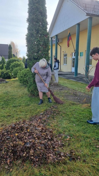 Spalio 30 d. vyresnių klasių mokiniai aktyviai tvarkė mokyklos teritoriją. Mokiniai buvo puikios nuotaikos, nes dirbdami ne tik švarino gamtą, aplinką, bet ir pajuto bendruomeniškumo jausmą.