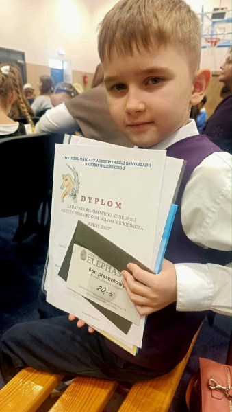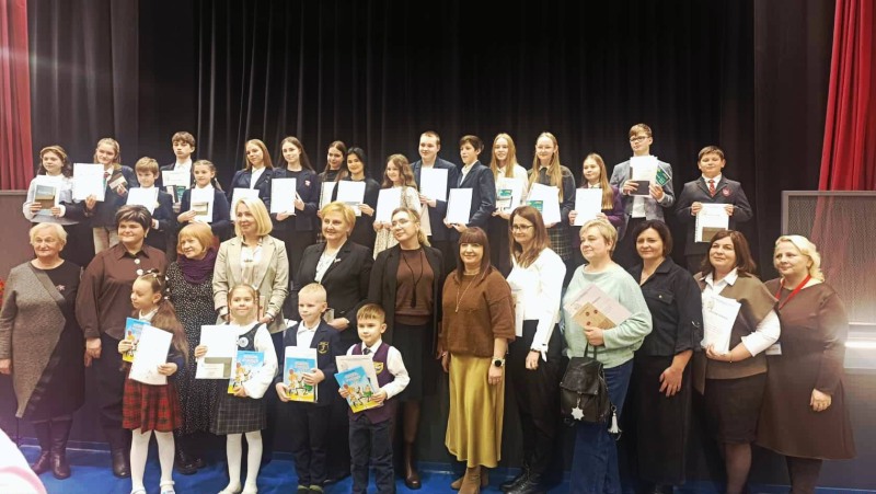 Damian Taraš­ke­vič (1 kl.) gavo Pagy­ri­mo raš­tą (mok. Ire­na Kor­vel)