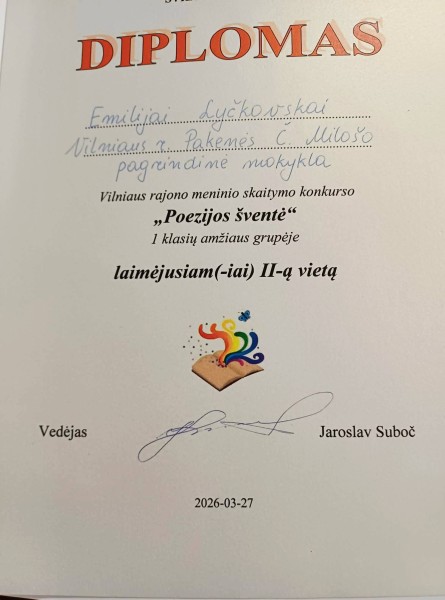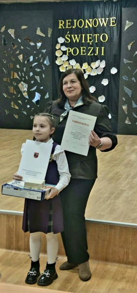 Emi­lia Łycz­kow­s­ka zdo­była 2 miejs­ce w gru­pie wie­ko­wej klas 1 (naucz. Ire­na Korwiel).