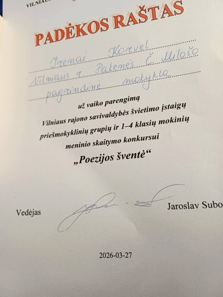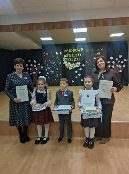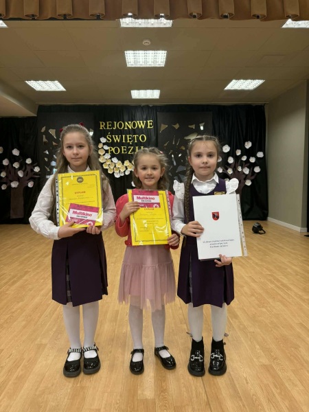 27 mar­ca trzy recyta­tor­ki z naszej szkoły brały udział w Rejo­no­wym Kon­kur­sie Recyta­tor­skim „Świ­ę­to Poe­zji”, który odbył się w Gim­na­z­jum w Mic­ku­nach.