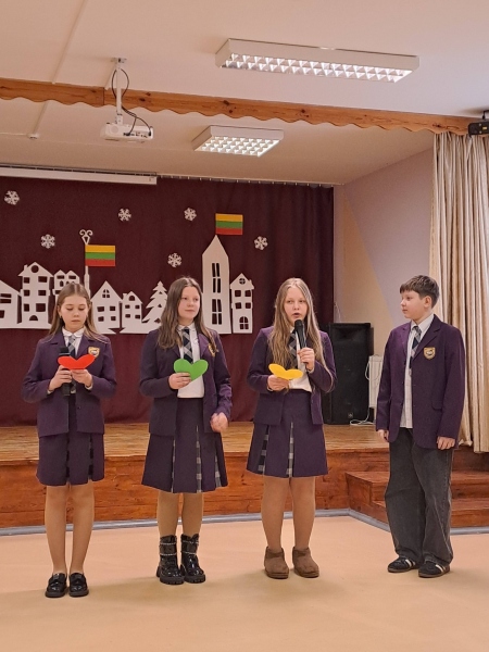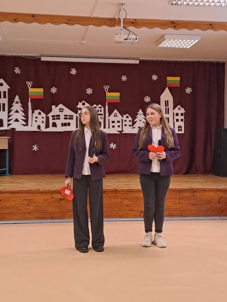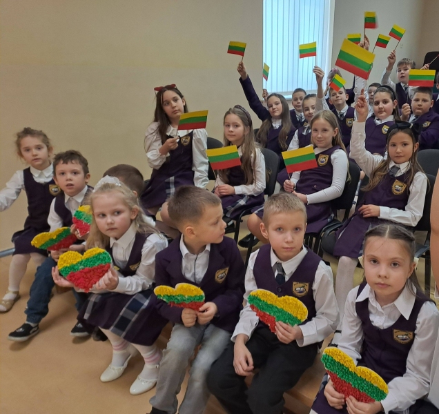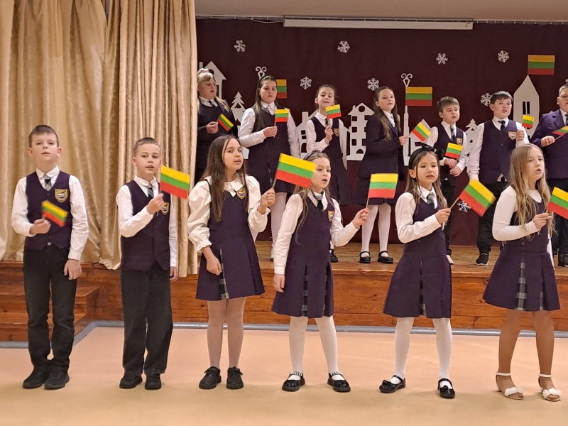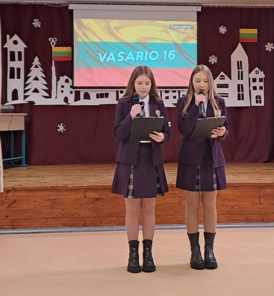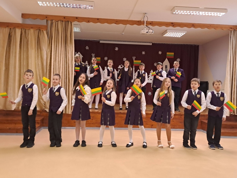 Vasario 13 d. mokyklos aktų salėje susirinkusi mokyklos bendruomenė paminėjo Lietuvos valstybės atkūrimo dieną.