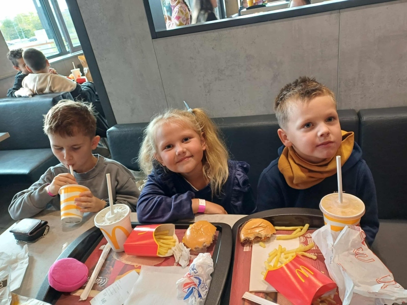 Nie mogło też zabraknąć jednego z tradycyjnych punktów każdej szkolnej wyprawy – wizyty w McDonald’s. To zawsze duża atrakcja dla dzieci – nie tylko pyszne smakołyki, ale także nauka samodzielnego zamawiania i kulturalnego zachowania w miejscach publicznych.